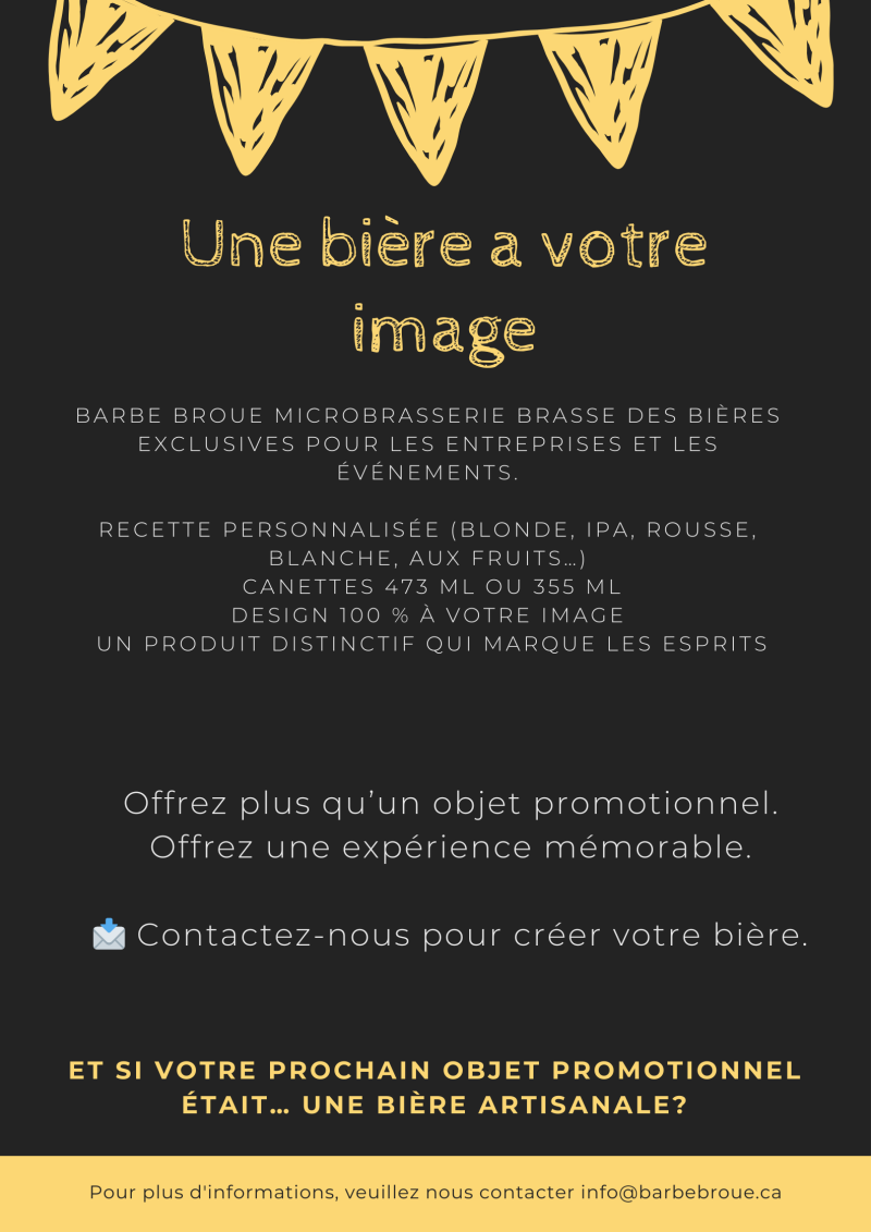 Barbe Broue Microbrasserie vous propose une solution hors du commun : une bière artisanale brassée spécialement pour votre entreprise ou votre événement.